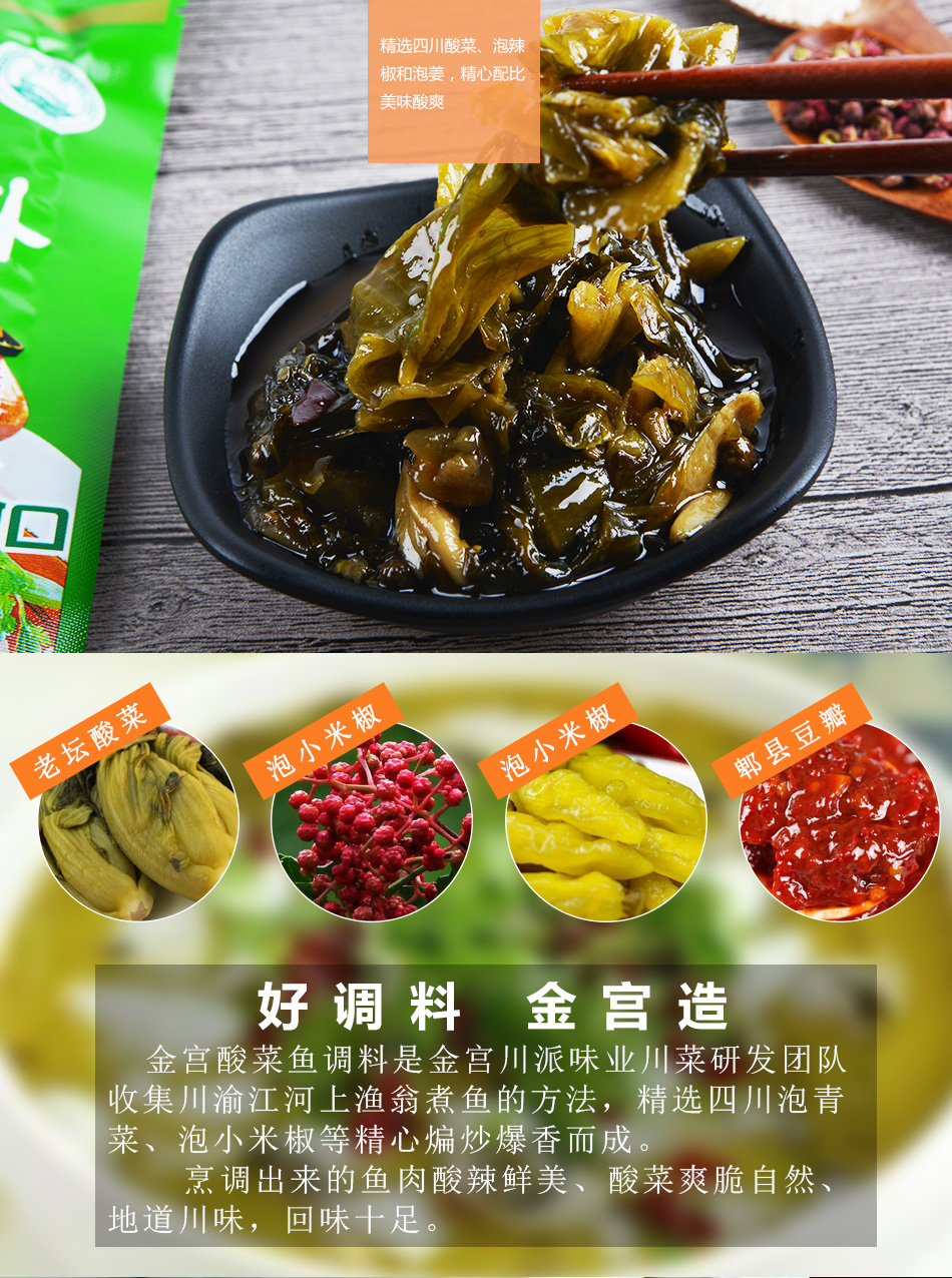 產(chǎn)品簡(jiǎn)介:本品為金言川派味業(yè)川菜研發(fā)團(tuán)隊(duì)收集川渝漁笛煮魚技巧。精心調(diào)配而成。晴選四川泡菜、優(yōu)質(zhì)花駔等食材。讓魚肉酸香可口,回味無窮。